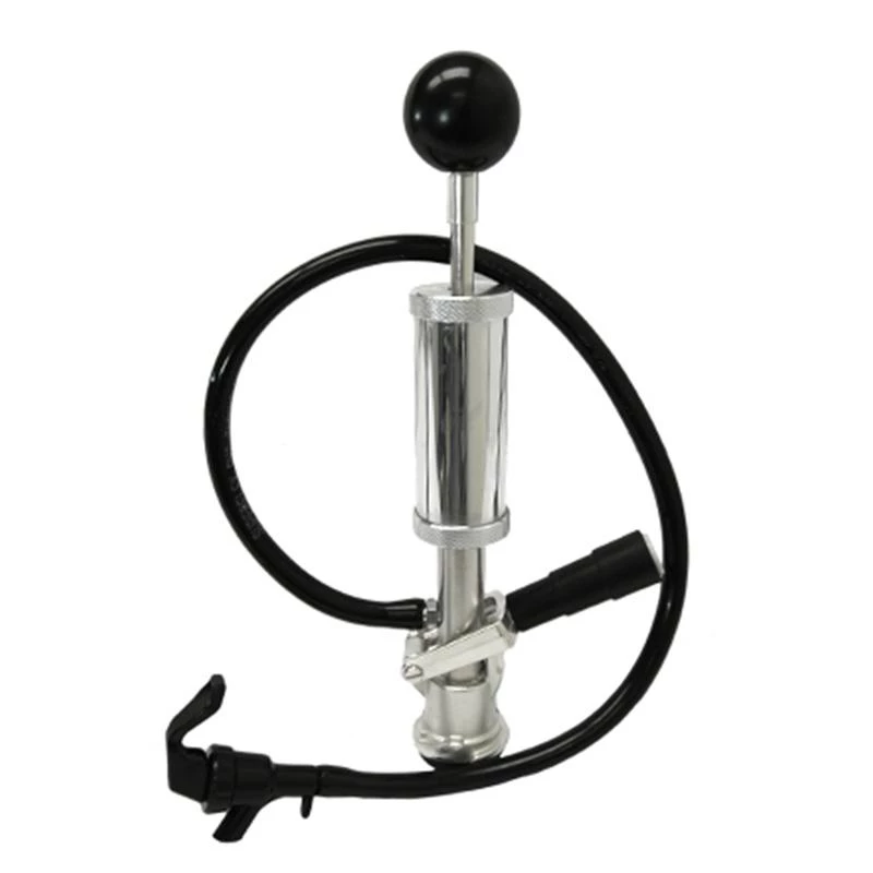 The D Systems (American Sankey) is considered the most versatile and abundant valve available. Major American breweries, such as Anheuser-Busch and Miller use D system valves. Therefore, this 4″ Cylinder Hand Pump with Lever Handle and Faucet/Hose is your best choice for tapping your keg at parties, events, barbecues and more! Fabricated with a forged brass base and chrome plated air pump. The base has been rendered in a tin-nickel plate to reduce the risk of corrosion in all environments. It also features a 4″ long stroke plastic faucet with squeeze trigger.