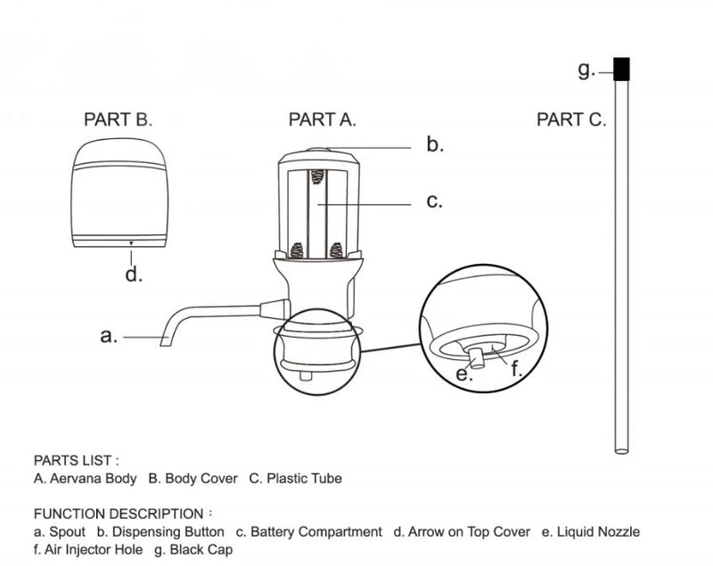 The New Aervana Essential to the Aervana one-touch aeration line, providing the same amazing instant aeration for wines that need to breathe, in a fresh, contemporary format.ย Justย press the button on top to dispense a more balanced glass of wine. Letting a wine โbreathe,โ or exposing it to air, is often just the thing to get a smoother, fuller tasting glass. With a simple to use, bottle-top design, the Essential allows you to pour your wine in style, while livening up its flavor with a little aeration. Simply attach the single tube that accompanies the Aervana Essential to the body of the aerator, then slip over an open wine bottle, and press the button on top. With a fresh, contemporary look that complements every bottle, the Essential will look great everywhere from your next dinner party to picnics and barbeques.