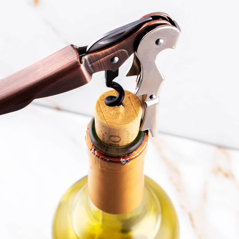 As a bartender or server, having a corkscrew on you is essential when serving wines and spirits. These beautiful corkscrews are constructed of durable stainless steel and beautifully complements the entire corkscrew. It even comes complete with an integrated bottle opener and flat blade foil cutter. Comes in 3 various colors with a beautiful antique finish.