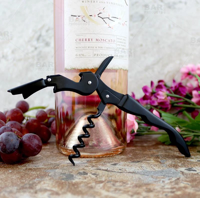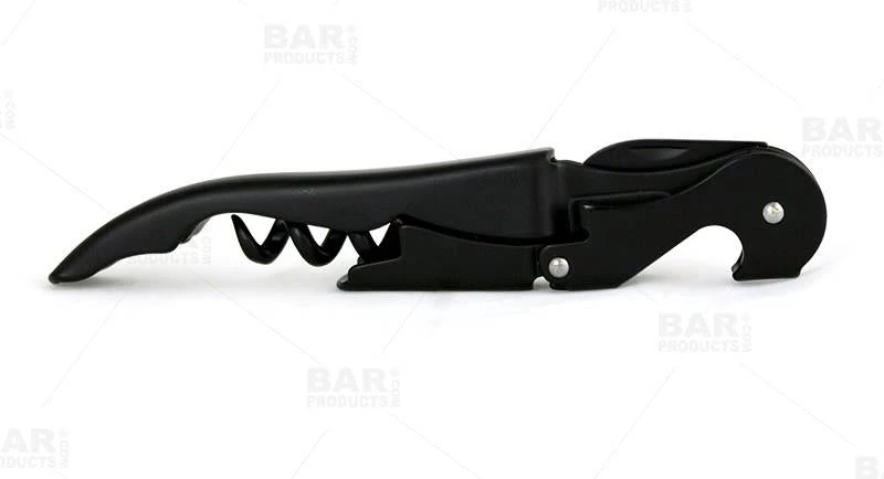 Make uncorking your wine bottles effortless with this superior double-hinged matte black corkscrew with non-stick black worm. This iconic wine opener comes complete with an integrated bottle opener and flat blade foil cutter. The black worm is constructed from a durable stainless steel and beautifully compliments the smooth black matte finish.