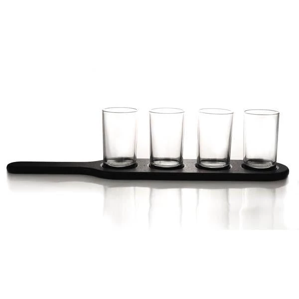 Breweries, tap houses, restaurants, and bars will love serving customers beer samples or shots on these handy paddle boards. These black plastic boards are much easier to keep clean then traditional wooden paddles. They are even dishwasher safe! Customers love the idea of being able to try different beers before they buy a whole pint, and you can give them a sizable sample served on an easy to carry board, and charge them for it. Square and skinny styles both available with holes or recessed surfaces.