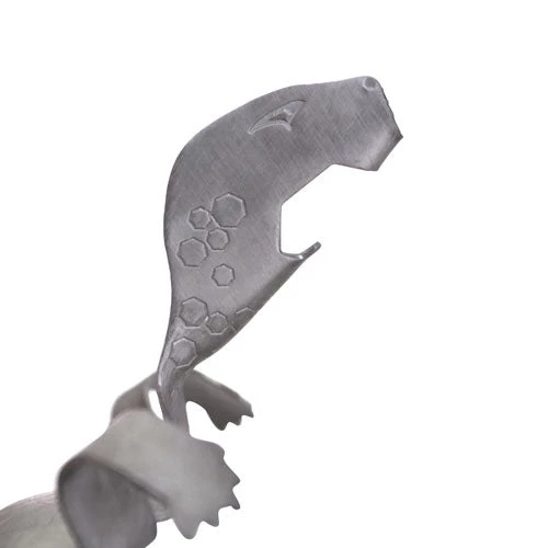 Adding to the usefulness of this wonderful tool, the mouth is also a bottle opener. This will be a cool addition to any bar. Made of quality stainless steel.