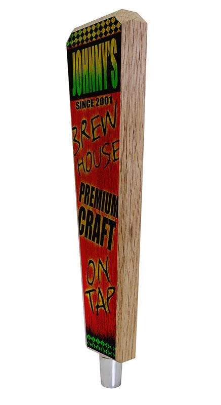 Handcrafted right here in the USA, our โcustomizableโ oak wood beer tap handles are the perfect solution to your keg dispensing needs. They are available in 2 sizes (10 inch or 8 inch) and feature high quality graphics that you can customize to represent your very own brand or brew. They come quality built and include the necessary hardware (Beer Ferrule) to easily attach to your standard size keg dispensing unit in order to get your brews flowing quickly and easily. They are 1 inch thick with a smooth concave flare cut design.