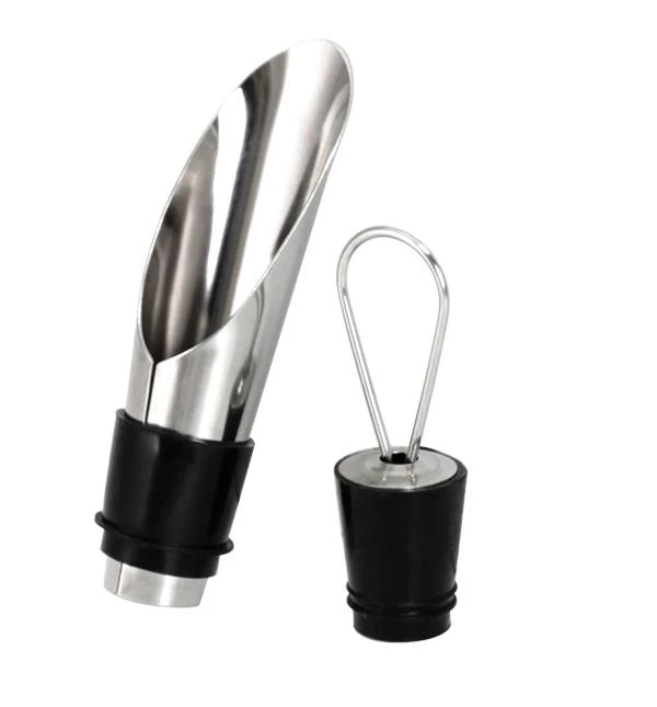 This chrome wine pourer fits standard bottles and measures three inches. This 2-in-1 wine tool designed to give you a continuous, smooth pour free of clogging, and the wine stopper can be used without removing the pourer. This Wine pourer is affordable and stylish ways to increase the professionalism and efficacy of any home, bar and service business.