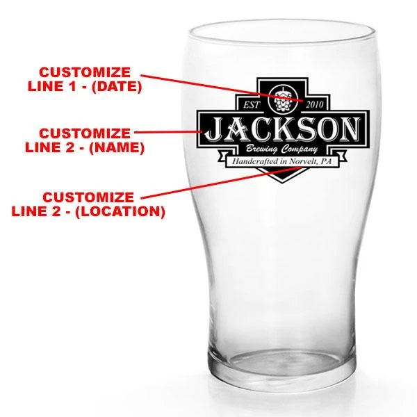 Simply type in your information and have your very own personalized Brewing Company Pub Glasses! It’s so easy to do! No screen or setup fees and order minimum is as low as 12.