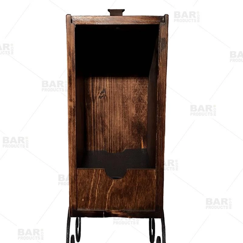 The amazing dark walnut Wine Nook with Chalk Board Plate on door. Comes with ice pack, a 3L fillable bag, and chalk. Can also hold a 3L already bagged beverage. It ships with the legs unattached so some assembly required. Once together you will love the look and function of this beautiful wooden wine nook. Your guests will be amazed with the Chalk Plate showing name of the wine, liquor, cocktail, or any non-carbonated beverage you’ve chosen to serve. Measures 17″ x 6 1/4″ x 8 1/8″ and weighs 4.5 lbs. Perfect for outside patios or even fits perfect on kitchen counter. The nature of real wood allows for variation in color, actual product may appear slightly different than product image.