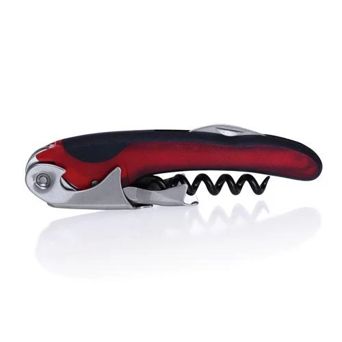 An budget choice for a great-looking wine opener and comes in Black, Red, and Blue. The soft grip on the handle is an attractive and comfortable addition. At 4.5″ long closed and 1.25″ at its widest, the double-boot lever and knife are both stainless steel, and the spiral has been Teflon coated.