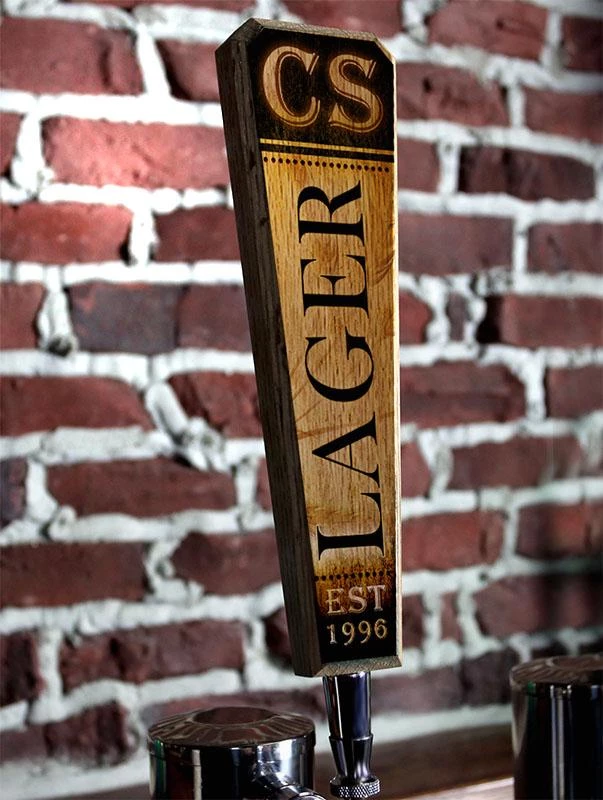 This โLagerโ template design is the perfect way to promote your signature craft. The top portion of the handle is where you can enter your very own initials, and the bottom portion is where you can enter your establishment (est) date of choice. The design features a burnt, rustic element that melts into the natural wood grains beautifully.