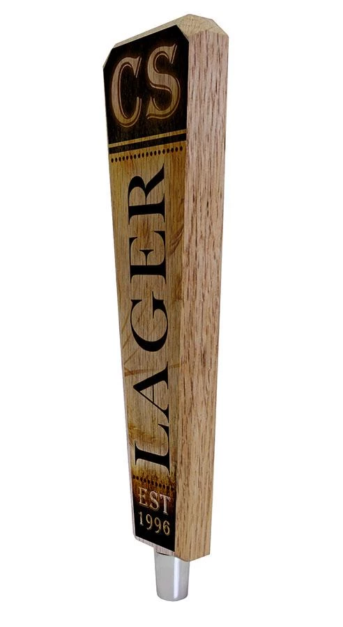 Handcrafted right here in the USA, our โcustomizableโ oak wood beer tap handles are the perfect solution to your keg dispensing needs. They are available in 2 sizes (10 inch or 8 inch) and feature high quality graphics that you can customize to represent your very own brand or brew. They come quality built and include the necessary hardware (Beer Ferrule) to easily attach to your standard size keg dispensing unit in order to get your brews flowing quickly and easily. They are 1 inch thick with a smooth concave flare cut design.