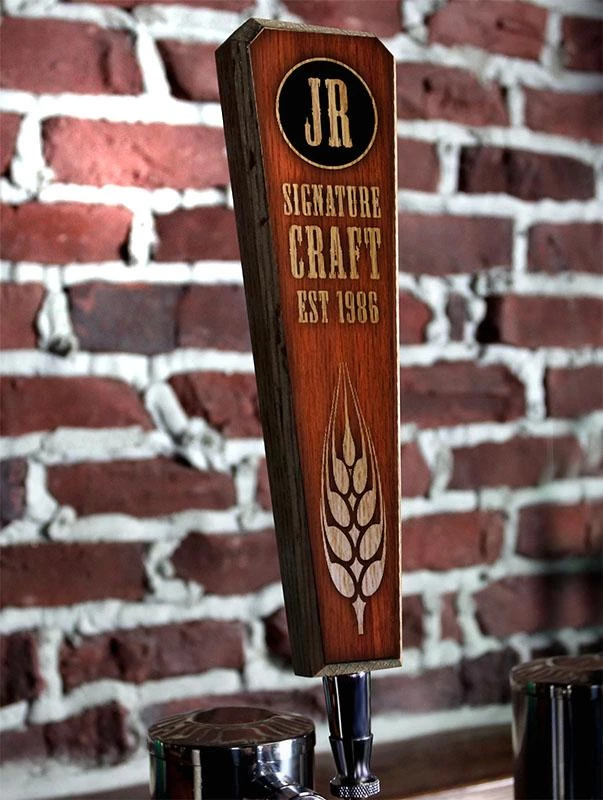 This classy cherry wood โSignature Craftโ template design is the perfect way to promote your very own home brew. It is uniquely customizable to display your Initials (at the top) as well as a personal establishment date (est). An elegant, clean design that blends with the wood grains of the natural oak makes this beer tap handle perfect for any draft dispensing needs.