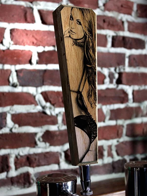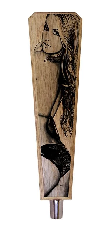 This โsexy ladyโ design is a stellar option when you are looking for the perfect beer tap handle to decorate your man cave or recreational room. She is sure to add a hot element to your dรฉcor, and is very inviting to your thirsty buddies. High quality graphic blends perfectly with the natural wood grains of the oak.