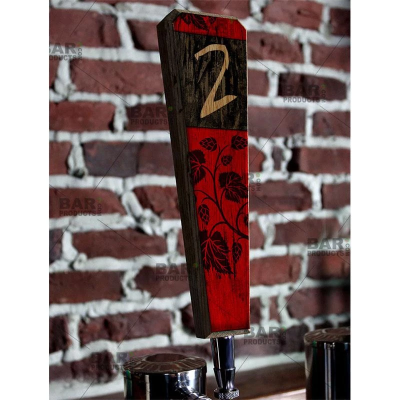 When it comes to our handcrafted oak wood beer tap handles, quality is definitely not something that has been overlooked. You will not find a better quality beer tap handle at this price anywhere else! We have taken the steps to showcase a smooth beveled outer frame, along with full color printing capabilities that will last through continuous wear and tear. This numbered red and black grunge design is fun, loud and rustic…. perfect for those hipster craft beer bars.