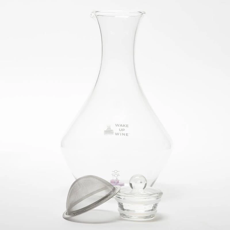 750 ml Premium, Lead-Free Glass Decanter with Airtight Glass Stopper for the WAKE UP WINE and WAKE UP WINE PRO electronic decanters. Impress your guests with its sleek design. Itโs dishwasher safe and made of recycled glass. Itโs a great conversation piece making it a beautiful addition to any kitchen, bar or table. Regulate your pour using the measuring marks at 4, 6, and 8 oz.