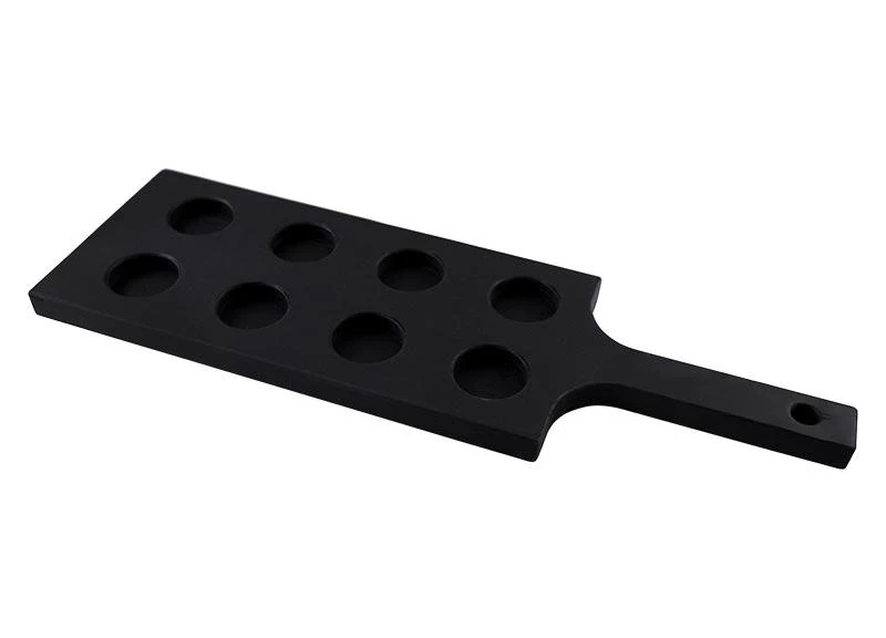 This unique paddle is a fun new way to serve guests samples of shots, beers, liquor, shooters, and more! This 17.5 inch wooden tasting flight paddle is completely covered in chalkboard paint, meaning you can write whatever you wish on the paddle. You can also have the customer write on it. The predrilled holes are 1 5’8″ in diameter.