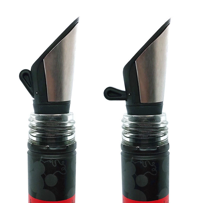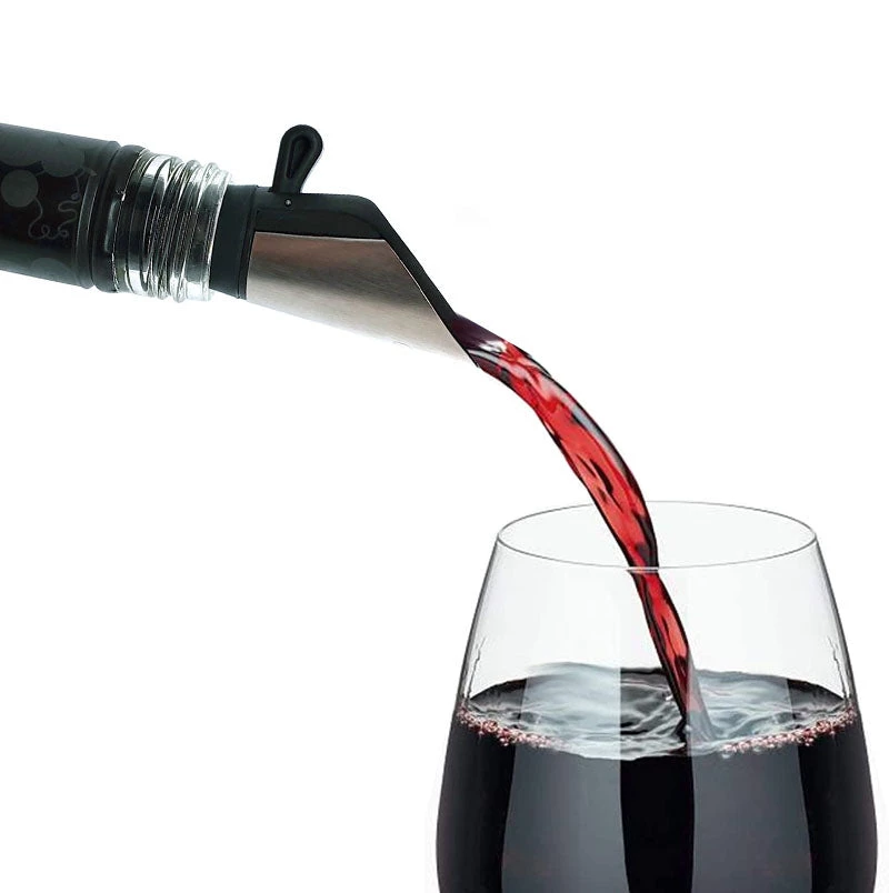 Flip to open and pour wine. Flip to close and seal open wine bottle. Its that simple yet so useful! These wine pourers offer you the luxury of not only a wine pourer but a wine bottle stopper as well. Showcasing an elegant stainless steel accent, this cool combo wine pourer not only works great, but it also looks great.