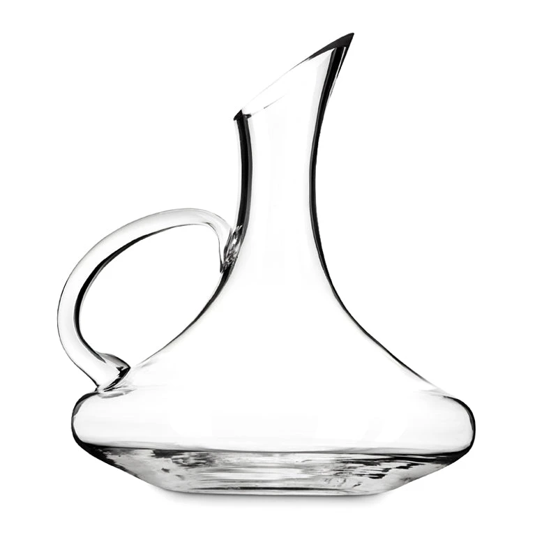 Hand-blown glass that incorporates tilted pour spout, curved handle and broad-set base for optimal aeration through classic design. Holds a standard bottle of wine. Easy filling spout and pouring handle. Hand wash recommended.
