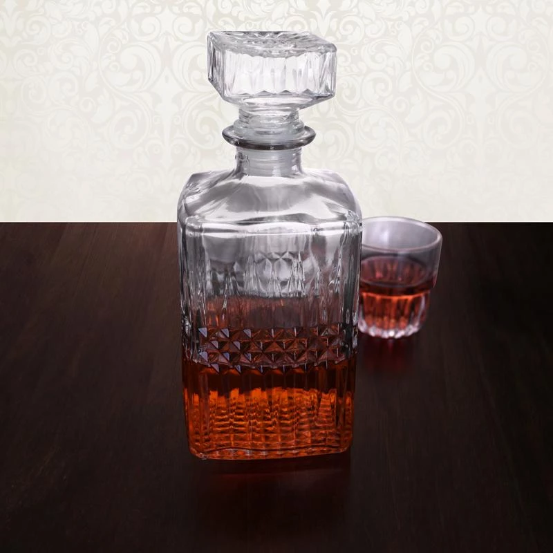 The classy design of this glass decanter stands the test of time. Featuring a crystal-cut design, heavy stopper, and even a delightful bow, this decanter makes a great gift or addition to your home bar for storage of fine spirits.